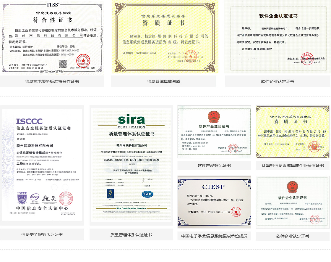 公司通過了ISO 9001質(zhì)量體系認(rèn)證,是經(jīng)認(rèn)定的國家軟件企業(yè)、國家高新技術(shù)企業(yè),是中國電子學(xué)會信息系統(tǒng)集成分會產(chǎn)、學(xué)、研合作成員單位。